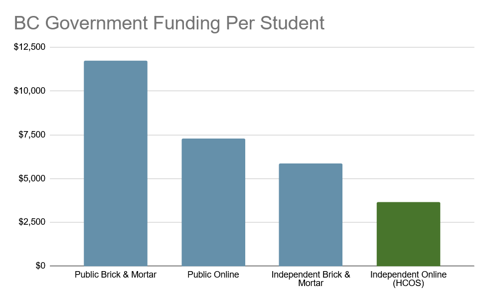 Online Learning is an underfunded sector in BC education, with the costs of running an online school only slightly lower than a traditional brick & mortar school. Yet online learning funding is, on average, only 62% of brick & mortar funding.