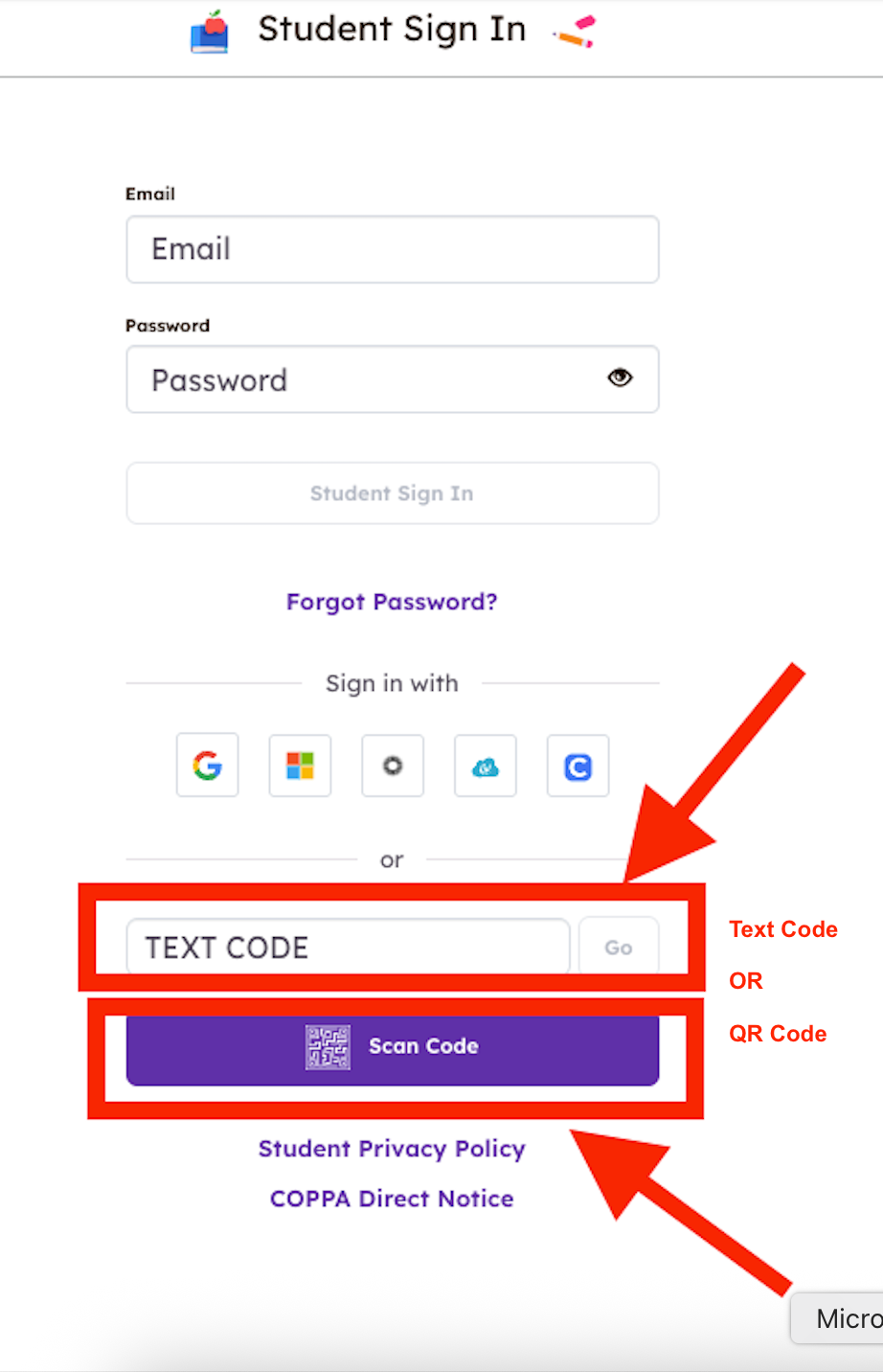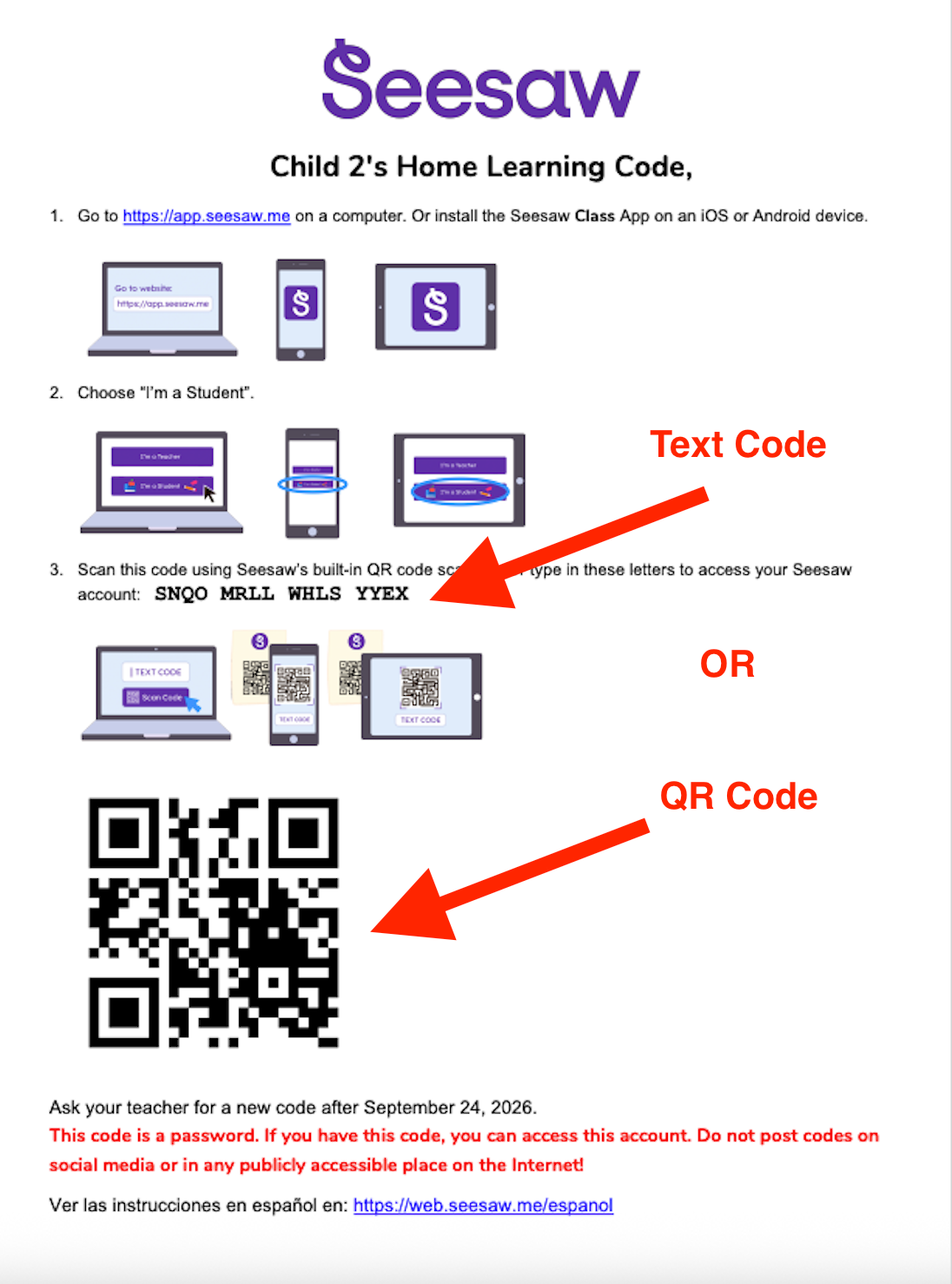 - You will receive your child’s ‘Home Learning Sign-in Code’ from your teacher with your unique QR code or Text Code