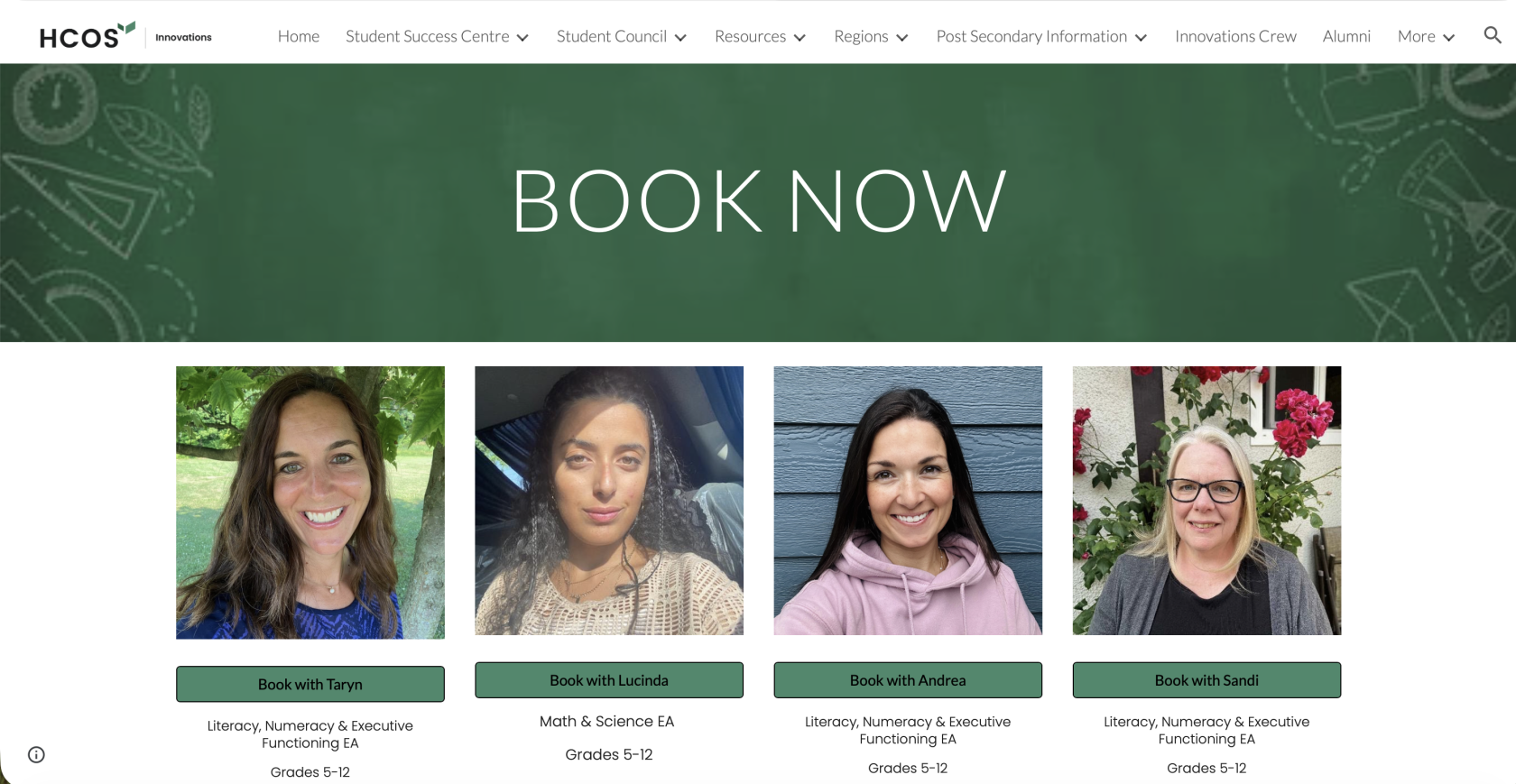 The Student Success Centre (SSC) is a free online-based universal support available to all students in grades 5-12+. It is comprised of a team of EAs who come ready to support students with Numeracy (Maths & Sciences), Literacy (Humanities, etc.), and Executive Functioning (life skills building) needs. Students can book up to 2 sessions per week (with one or a combination of EAs) at any point throughout the school year.
