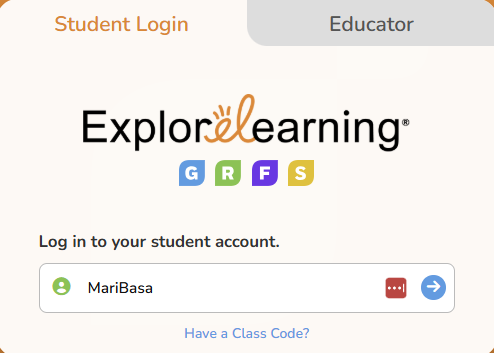 2. Use this link to go to Explore Learning and select the blue words “Have a Class Code?”