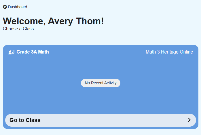 9. If you wish to sign your child up for another class (for example, you just signed up for Math, and you also want to sign them up for a Science class), select “Join a Class” at the top right of the page.