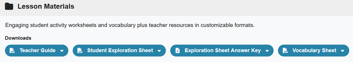 5. Scroll down, in the Gizmo, to Select the "Teacher Guide," "Student Exploration Sheet," "Exploration Sheet Answer Key," and "Vocabulary Sheet."